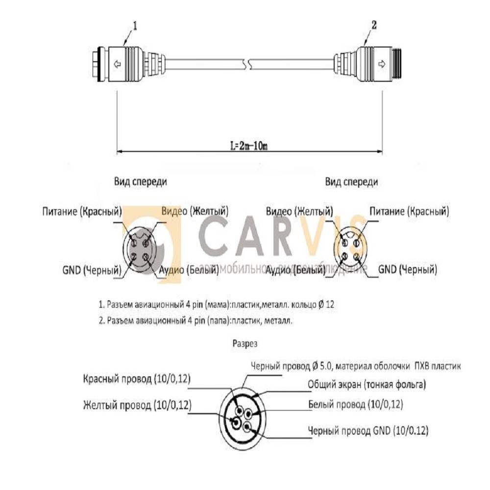 Переходник, позволяющий соединить между собой автомобильный регистратор и камеру наблюдения. Длина кабеля — 10 метров позволяет устанавливать видеонаблюдение не только в легковые автомобили, но и спецтранспорт.